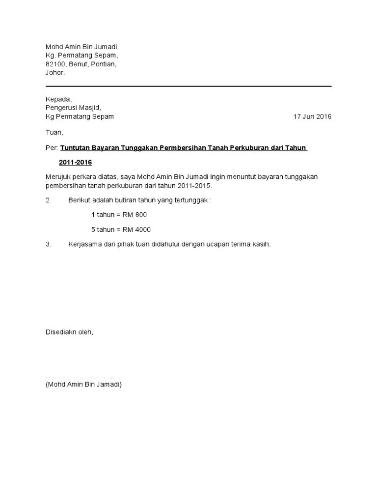 Contextual translation of contoh surat tuntutan bayaran tertunggak into english. Tertunggak contoh surat tuntutan bayaran. Contoh surat perjanjian hutang dengan bunga. Satu lagi khidmat pesanan masyarakat cerita hutang debt tales. Contoh surat rasmi tuntutan bayaran . Tuan, permohonan menuntut bayaran alatan bagi bengkel fundamental of.